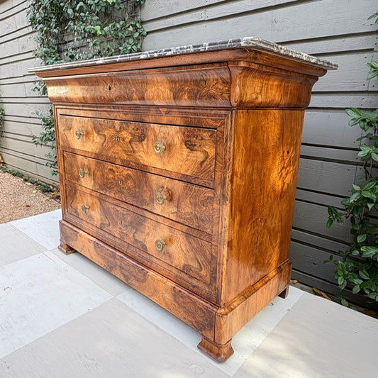 19th c. Bleached Walnut Louis Philippe Commode with Marble Top